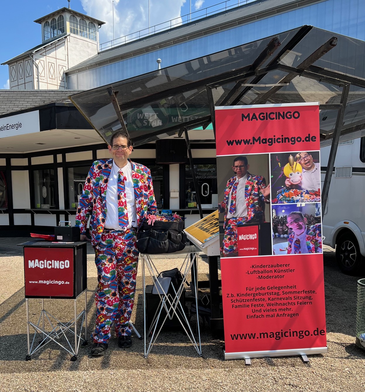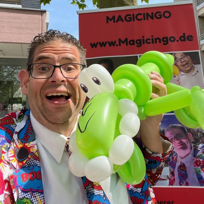 Magic Ingo ist Ihr professioneller Zauberer und Luftballonkünstler aus Köln. Mit einer faszinierenden Mischung aus verblüffenden Zaubertricks und kunstvollen Luftballonfiguren begeistert Magic Ingo Großes und Kleines Publikum jeden Alters. Ob für Geburtstagsfeiern, Hochzeiten, Firmenveranstaltungen oder Messen – Ingo bringt Farbe und Freude in jede Veranstaltung. Lassen Sie sich von den geheimnisvollen Illusionen und der Kreativität seiner Luftballonkunst verzaubern. Kontaktieren Sie uns, um Ihre Veranstaltung zu einem unvergesslichen Erlebnis zu machen!