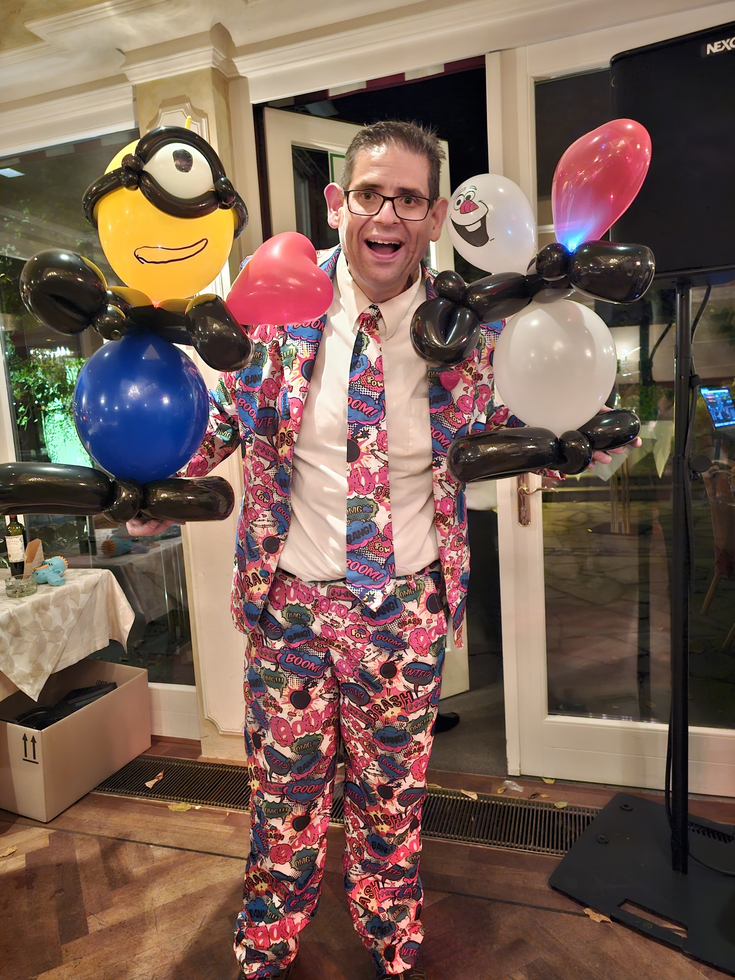 Als Luftballon Künstler stelle ich meine Leidenschaft und Kreativität unter Beweis, indem ich beeindruckende Ballonfiguren erschaffe, die sowohl Groß als auch Klein begeistern. Ob bunte Tiere, fantasievolle Hüte oder ausgefallene Figuren – jede Kreation ist ein kleines Kunstwerk, das mit viel Geschick und Hingabe gefertigt wird. Besonders bei Kinderfesten und Veranstaltungen zaubere ich mit meinen Ballonkreationen ein Lächeln auf die Gesichter der kleinen Gäste und verwandelt jeden Moment in ein unvergessliches Erlebnis. Zusammen mit meiner zauberhaften Performance als Zauberer schaffe ich eine magische Atmosphäre, die die Zuschauer in Staunen versetzt. Lassen Sie sich von meiner bunten Welt der Ballonkünste überraschen!